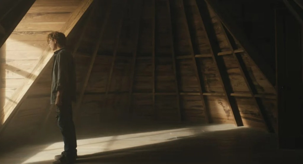 Quand le réalisateur se réveille, il transforme sa mise en scène jusque-là banale en exercice ludique et amusant : Johnson touche à l’horreur dans deux séquences avec brio, faisant naître une angoisse absente et un regain d’intérêt dans cette enquête. Quand il se rappelle que l’éclairage ne consiste pas à tout éclairer pareil, il joue de la luminosité de l’église pour toucher à l’imagerie religieuse. Son film gagne une beauté qui sert le propos du réalisateur : la reprise du religieux par l’extrême droite. Sans tomber dans un déni total de la religion, le scénario de Rian Johnson propose une vision nuancée du christianisme : idéalisme parlant à ceux dans le besoin, spolié par un conservatisme réactionnaire. Wake Up Dead Man porte bien son nom dans ces moments-là : le spectateur jusque-là passif est invité à se réveiller face au film, à participer à cette enquête, à réfléchir à son propre rapport à la religion grâce au sursaut de mise en scène de Johnson.